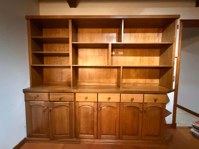 Imponente estante fabricado en madera raulí, reconocida por su durabilidad y cálido tono natural. Cuenta con cajones de apertura suave gracias a sus rieles telescópicos, que garantizan funcionalidad y comodidad en el uso diario.