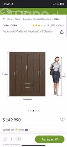 vendo ropero de madera, nuevo sin uso, viene en su caja, hago envios a domicilio