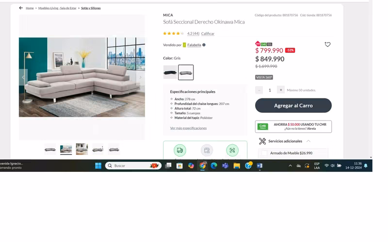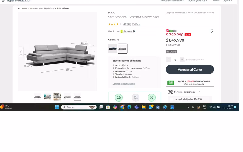 - Los LagosSillon 2 Cuerpos Gris Usado Con Detalles De Uso (Usado)