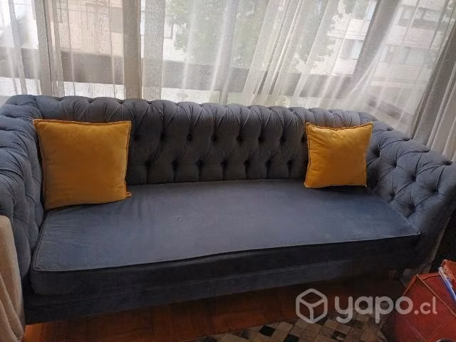 Vendí hermoso sillón 4 cuerpos, grande excelente estado, color azul grisáceo, muy cómodo, patas de madera, casi nuevo impecable.
