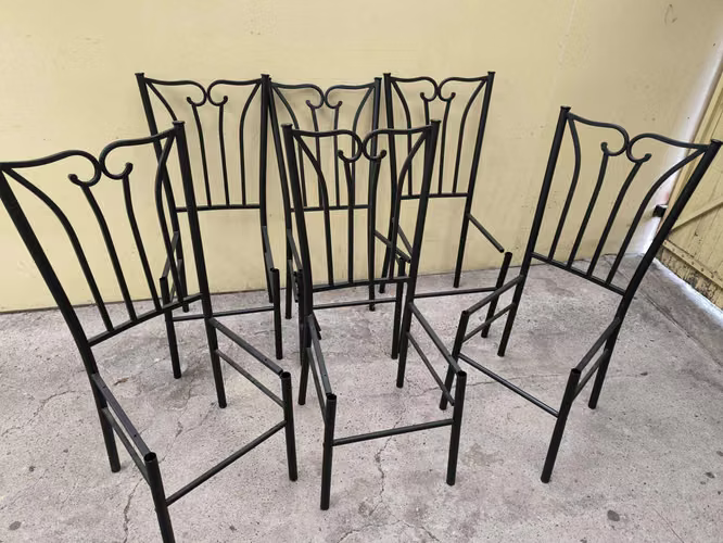 6 sillas de fierro mal estado, para ser recicladas o reparadas, el precio es por el lote completo