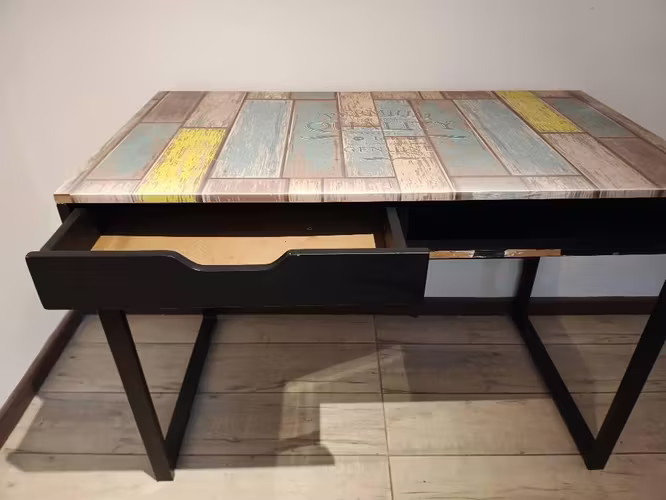 vendo escritorio, patas de metal, 1 cajón y 1 espacio abierto.