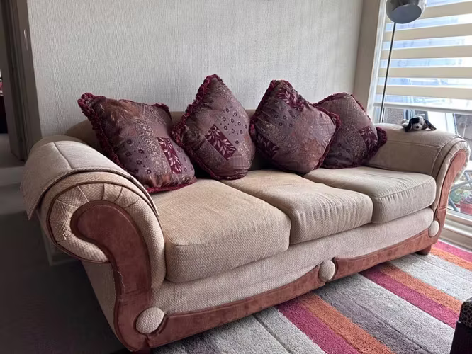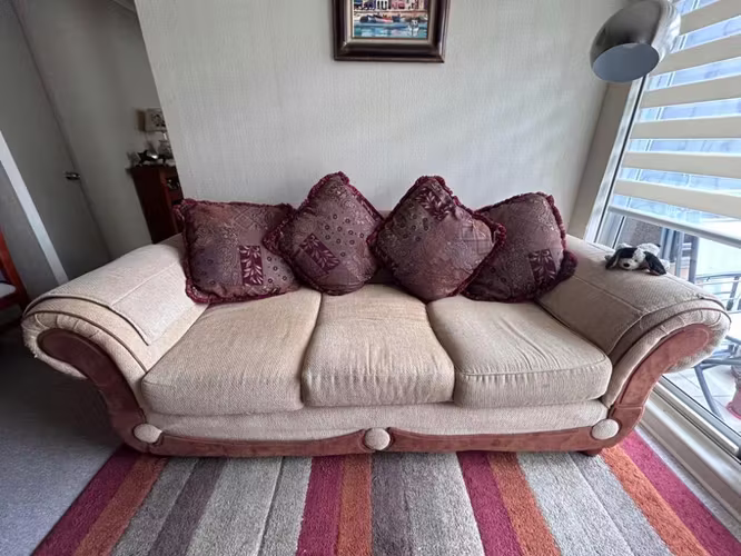 1 Sofá grande de 3 cuerpos + 4 cojines (218x107 cm)