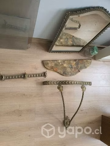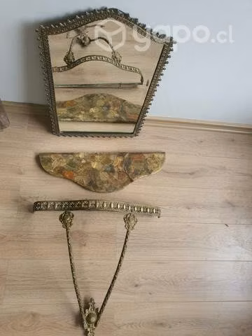 Hermosa mesa de Arrimo de Onix con Bronce+Espejo con marco de Bronce y colgador de Bronce.