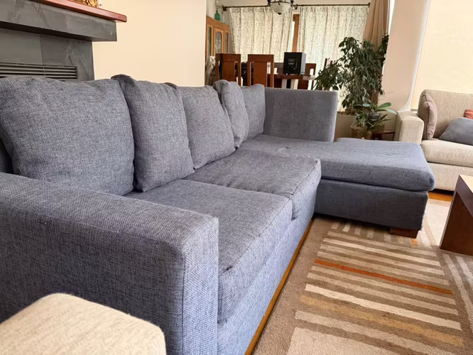 vendo sillon en L tres cuerpos si puede cambiar el lado de la L. Color azul. 5 cojines.