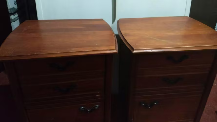 - San MiguelCama, respaldo y veladores, todo Rosen de madera y cuero de dos plazas, impecable.