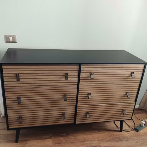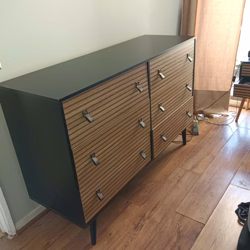 POR TRASLADO VENDO CÓMODA Y SUS DOS VELADORES MODELO AMBER NEGRO MATE/BRISE