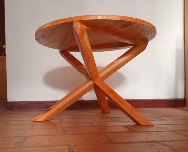 Mesa de madera de 60 cm. de diámetro y 42 de alto. Pino Oregon