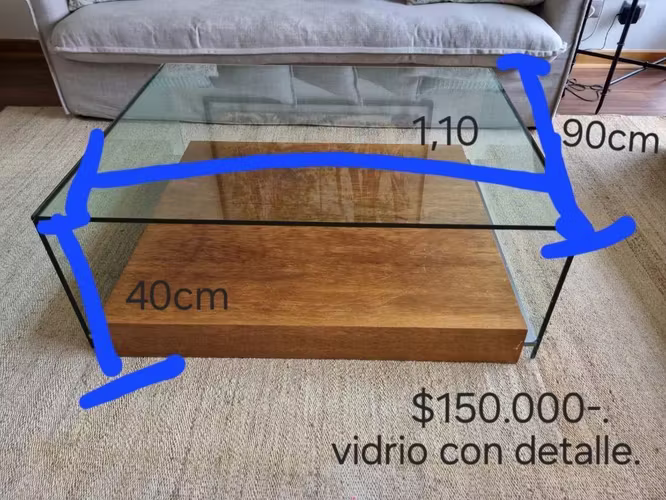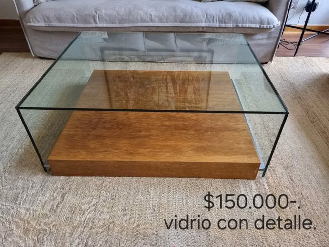 Se vende mesa de centro de vidrio y con bandeja inferior de madera. Mesa en buen estado, se vende por cambio de casa.