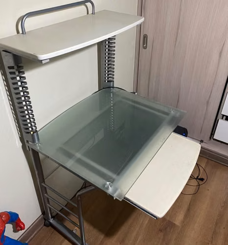 Vendo escritorio de vidrio lo vendo por renovación, especial para computador y tiene su repisa para poner adornos o lo que se necesite, viene con un mueble para pisar o poner un computador, esta en las fotos se lo saque por comodidad. Retiro en mi casa.precio conversable. Único detalle: se mueve un poco pero no afecta nada al uso, se nota al moverlo pero nada.