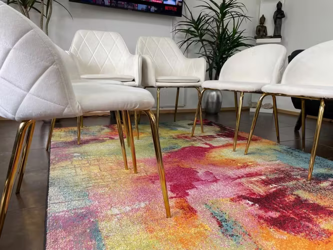 Maravillosas y elegantes sillas de comedor velvet golden beige, solo un par de meses de uso , tela exquisita suave color beige , hermosas patas doradas , firmes y cómodas , se venden por viaje , incluye 4 sillas + 2 sitiales todas por $250.000