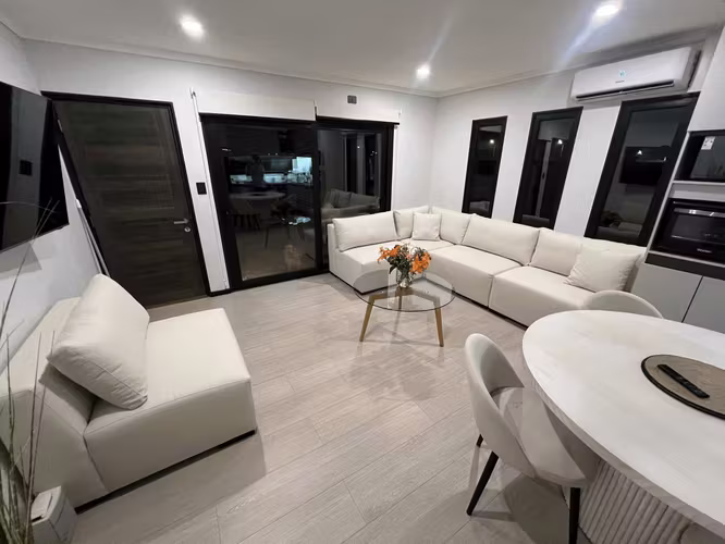 Sofá Nuevo modular ( 4 módulos de 94x90 y 1 modulo de 90 x90) color Lino Alcántara Crudo, se puede armar de distintas formas, muy versátil , extremadamente cómodo. Se vende por cambio de casa .