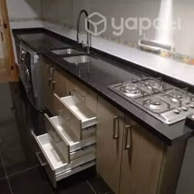 Mesón de cocina apto para encimera, horno embutido y lavaplatos