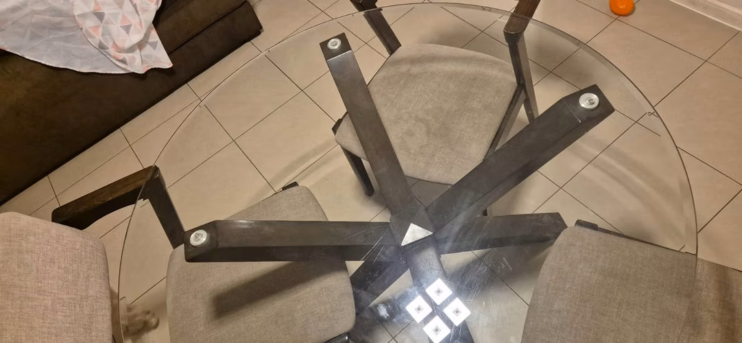 - SantiagoComedor vidrio 6 sillas estilo capitone