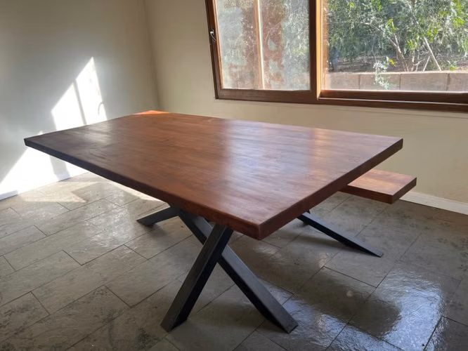 Vendo mesa de comedor para 10 personas, cubierta de roble 5 cm de espesor. Medidas 190 cm largo por 90 cm de ancho. Patas corchete de fierro. Sin uso. Retiro en Colina