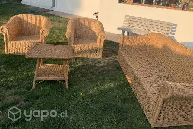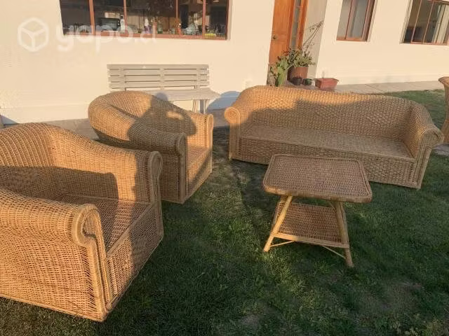 Sofá , dos sillones y mesa de centro (mimbre )