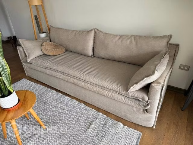 Sofá estilo nordico vanguardista con fundas de lino color hueso + extra de fundas color gris