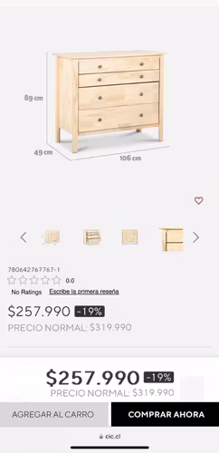 Vendo comida marca CIC. Madera de pino color natural con 4 cajones bien espaciosos. Medidas en fotografía. Solo se acepta transferencia o efectivo.