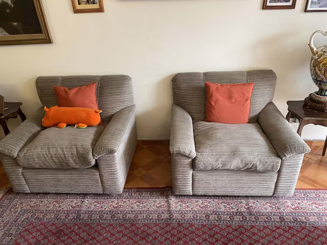 Living de 3 cuerpos. 1 sillón de dos cuerpos y dos sillones de un cuerpo. Insuperable estado. Con algo de polvo porque esta en una bodega de AKIKB en Huechuraba. Quien lo compre la retira desde la bodega.