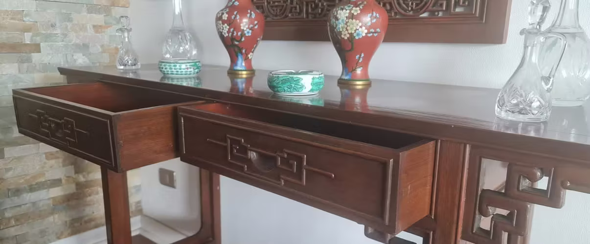 MESA ARRIMO ORIGEN CHINA - 50 AÑOS ANTIGUEDAD. 155 CM LARGO - 45 CM. FONDO