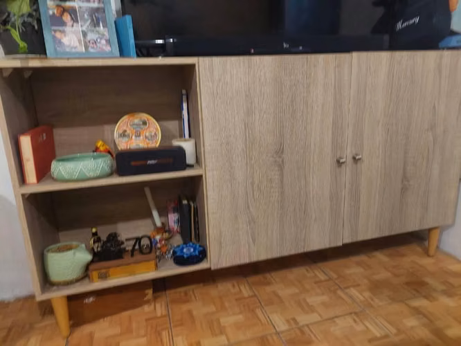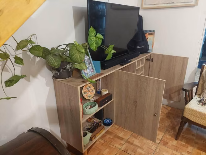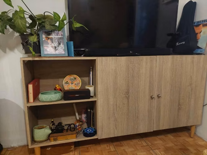 - AricaRack / Mueble TV color madera con puertas y ruedas – Viña del Mar