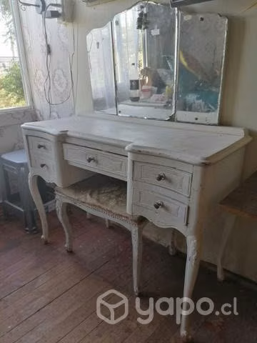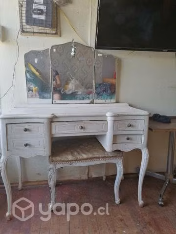 Mueble tocador normando antiguo con banqueta de regalo