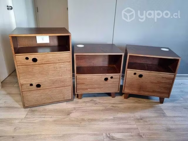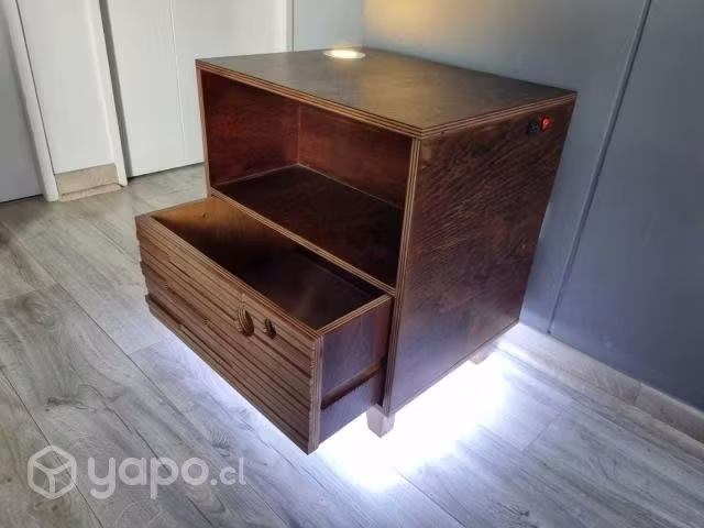 2 UD de ARTURITOS de madera nuevos para la cama de 50 ancho x 40 fondo x 57alto (CM) con gaveta grande, luminaria cálida en parte superior, led en parte inferior, botonera para activar las luces y enchufes en la parte trasera.