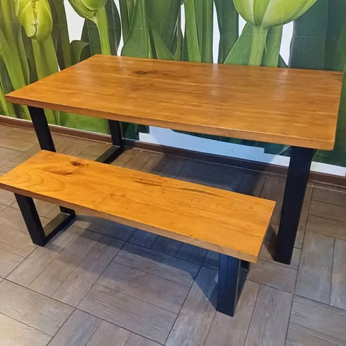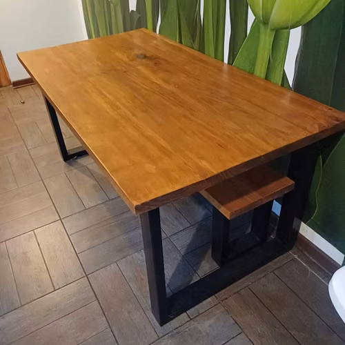 Comedor estilo Industrial metal madera con banco inferior. 160x90 cm Se entrega en comuna de La Florida.