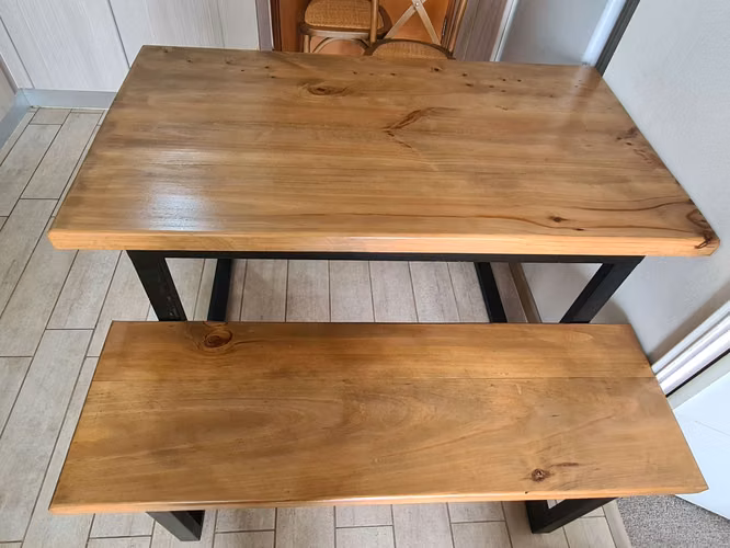 Juego de comedor para 4 personas, en muy buen estado. Incluye: mesa, dos sillas y una banca.