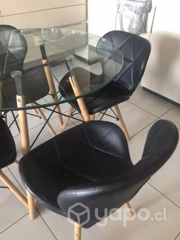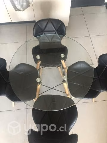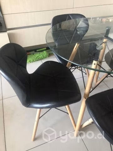 Vendo Juego de comedor: Mesa de vidrio + 4 sillas mariposa negras acolchadas. Todo en perfecto estado, tiene 9 meses de uso; vendo solo por mudanza.