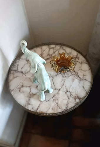 Mesas laterales redondas con cubierta de mármol. Excelente estado. Retiro por parte del comprador. Precio por cada una.