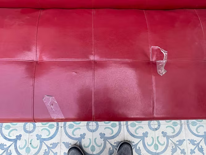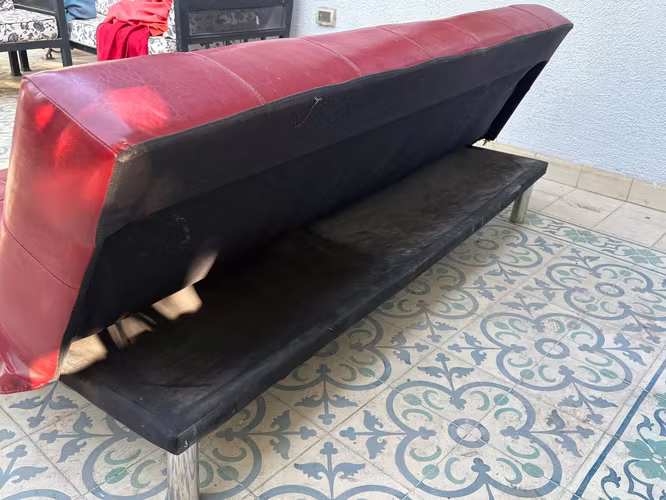 Sillón cama rojo, con dos detalles.