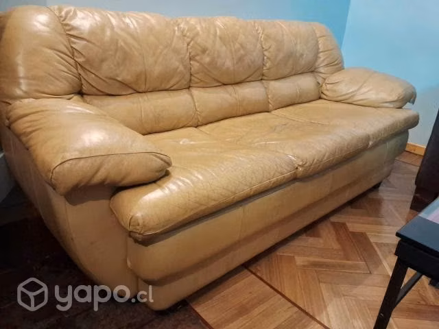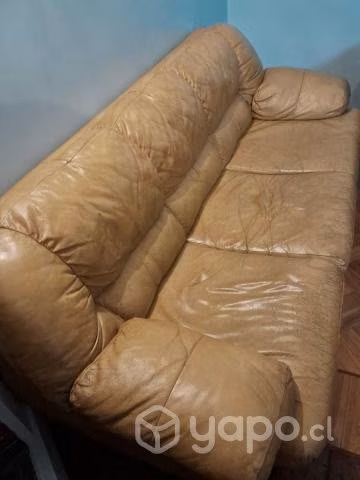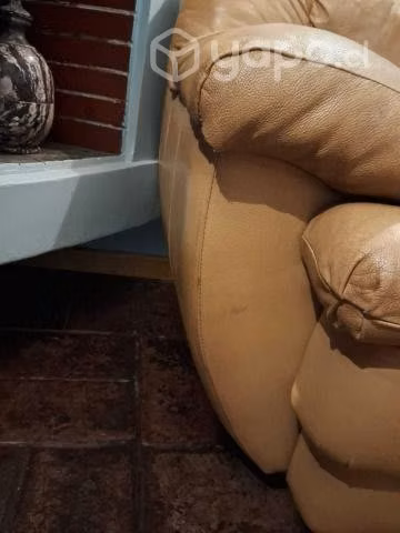 Sillón de cuero de 3 cuerpos, usado, con detalles