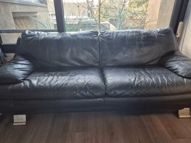 Traido de usa, sofa cuero natural negro con patas metalicas.
