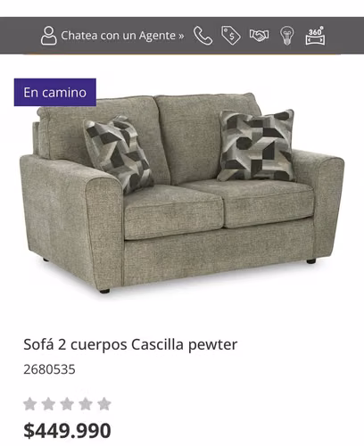 Sofa 2 cuerpos nuevo sin uso color gris Marca Ashley