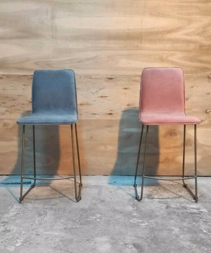 Taburete Azul y Terracota Velvet Estructura Trineo dorado alto asiento 60 cm negra Se venden ambos juntos. Son saldos. Semi nuevos
