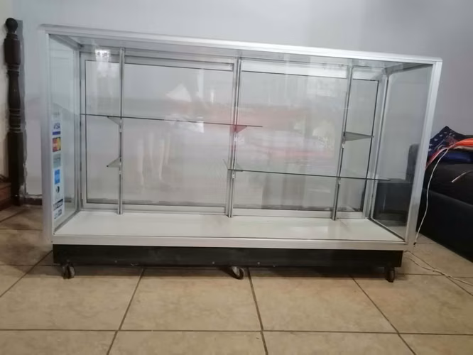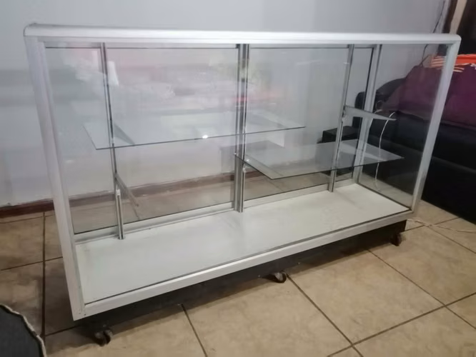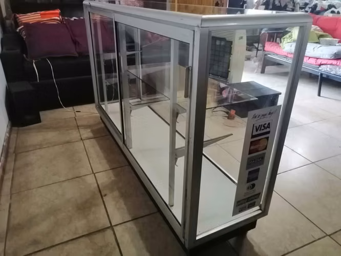 Se vende vitrina/mostrador de aluminio y vidrio en buen estado, con algunos detalles estéticos, pero funcionando perfectamente.