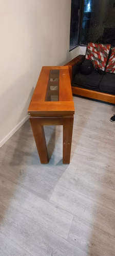 - ÑuñoaMesa de centro de madera solida y vidrio, usada, hecha a medida por Caco Trucco