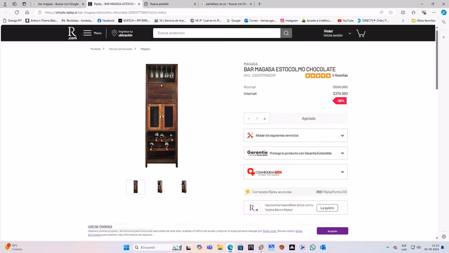 - SantiagoLibrero de 3 cuerpos con licorera y puertas