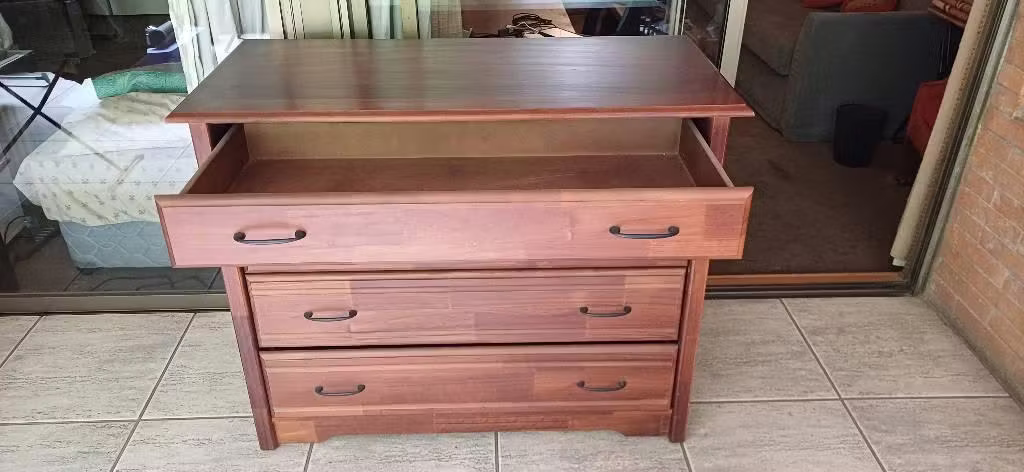 Cómoda de madera de pino finger joint. Alta calidad, los cajones funcionan a la perfección, sin generar ruido.