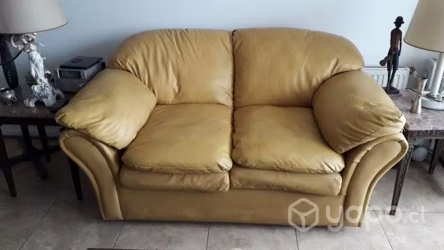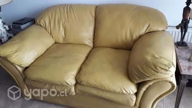 COMODO Y ACOGEDOR SOFA EN CUERINA COLOR MOSTAZA, USADO, PERFECTO ESTADO VENDO POR NECESIDAD