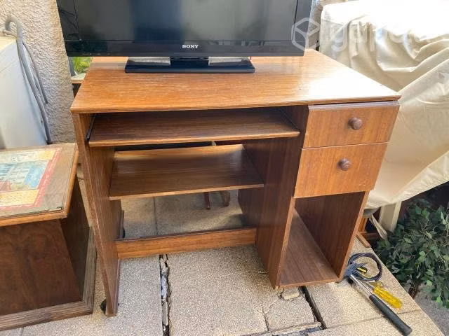 Vendo mueble de computador, 2 cajones, bandeja móvil para el teclado, bandeja fija para impresora. Terminado en madera natural.