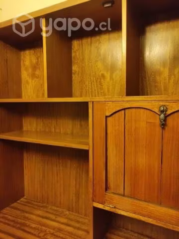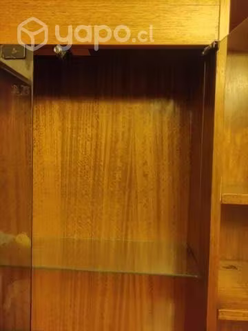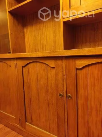 Estante de 184cm largo x 37cm fondo x 175cm alto, enchapado en madera, 4 puertas inferiores (con llave), repisas, vitrina de vidrio y compartimento con llave. Se vende por cambio de casa.