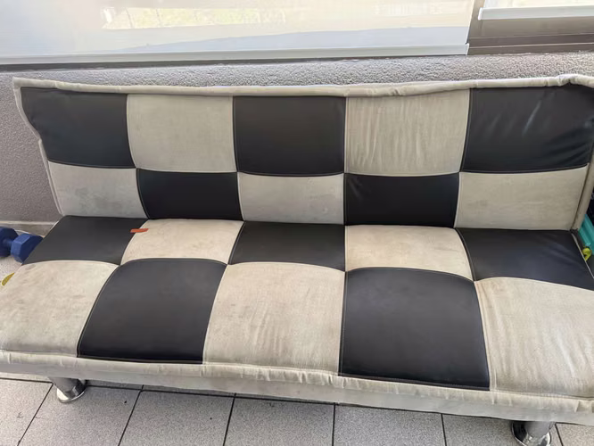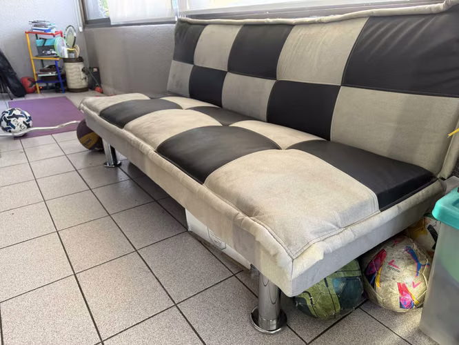 Especificaciones: Alto: 85 cm Ancho: 177 cm Profundidad: 90 cm Medidas del producto extendido: 43x177x115 cm Grados de reclinación: 105 - 180 grados Tapiz: Gamuza + PU Material de la estructura: Madera contrachapada Material del relleno: Espuma Material de las patas: Acero inoxidable Peso máximo de usuario: 240 Kg Peso neto: 28,5 Kg.