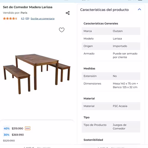 - TalcaImpecable Comedor para 6 Personas, como nuevo.