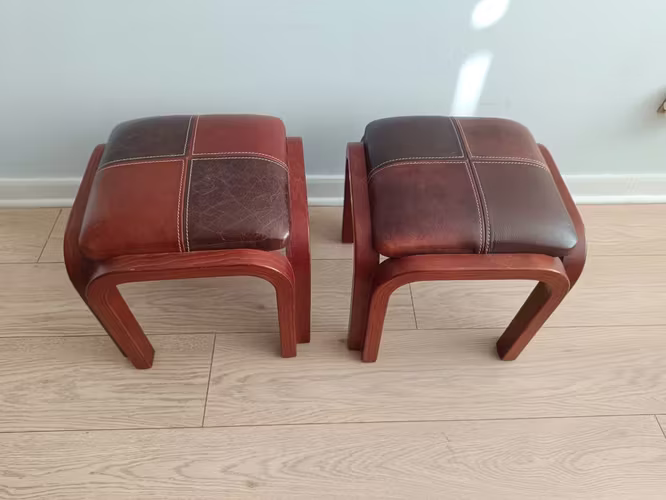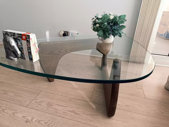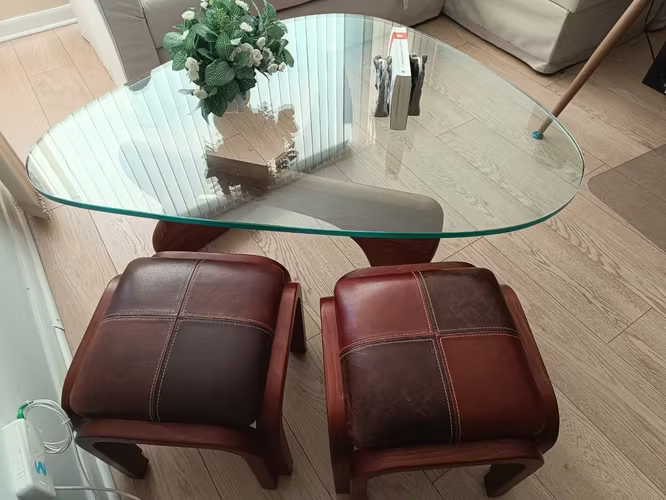 Bella mesa Noguchi color Nogal con 2 sillitas de cuero.