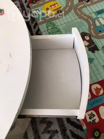 Mesa de centro redonda, dos cajones, color blanco, diámetro 90 cm, 36 cm de alto. Necesita renovación de esmalte.