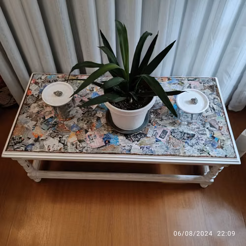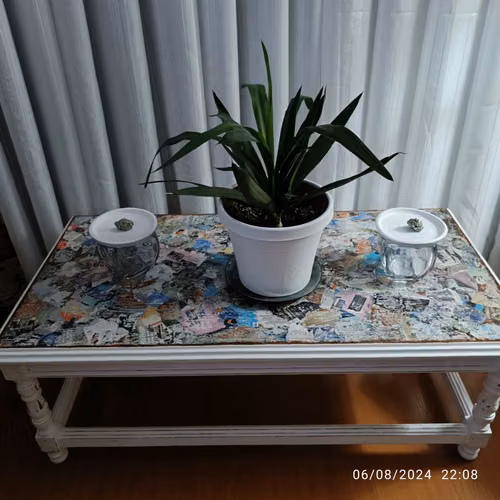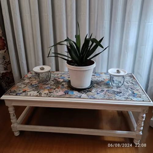 Vendo está hermosa mesa de centro, decorada con un diseño único y muy particular. Si tienes buen gusto sabrás valorar este modelo exclusivo.