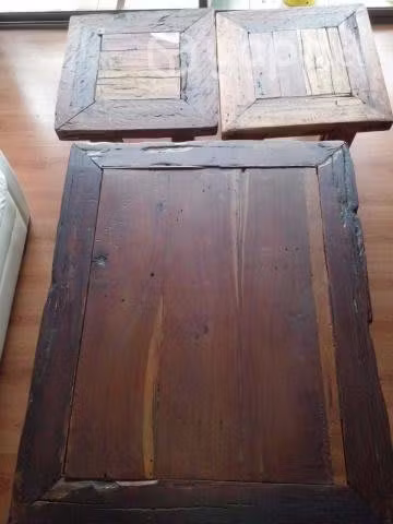 Juego de mesas de centro y laterales de roble de durmientes de ferrocarril.