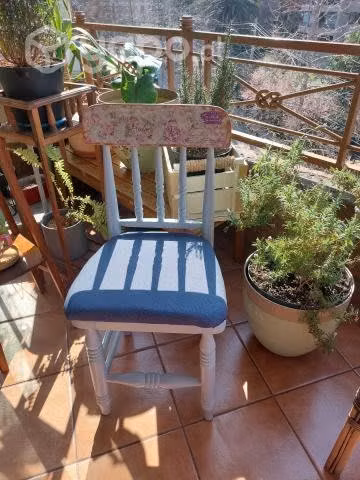 Par de sillas con pintura y tapiz nuevo.Son casi iguales.color celeste grisáceo. Muy firmes.el valor es por las dos.